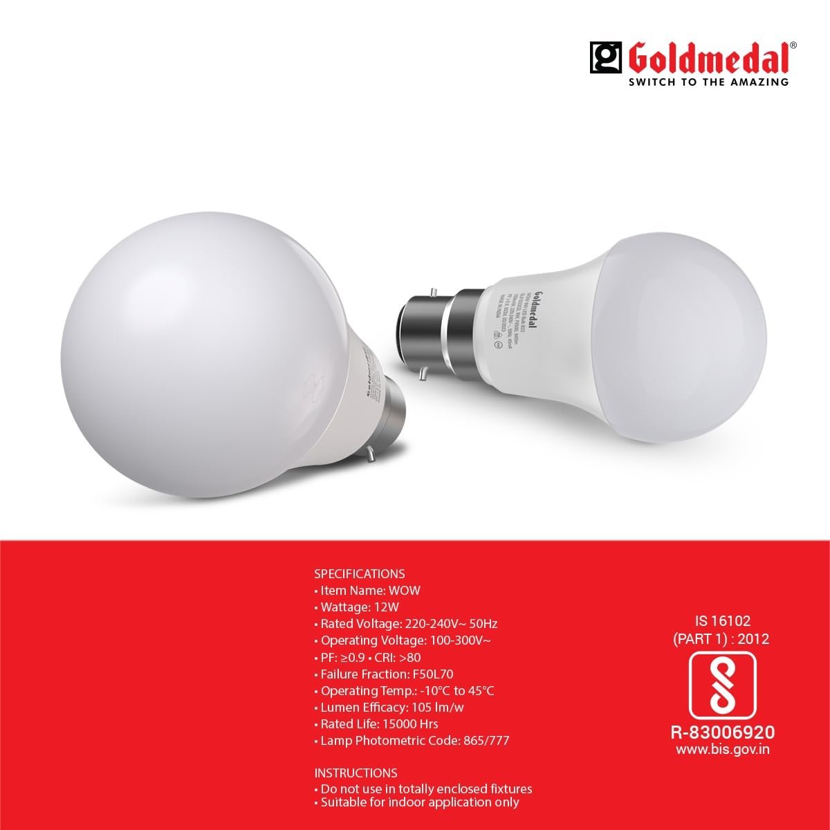 Goldmedal 12w WOW B22 LED Bulb – Energy Saving, Mercury-Free, Long Life LED Light (1 Year Guarantee)