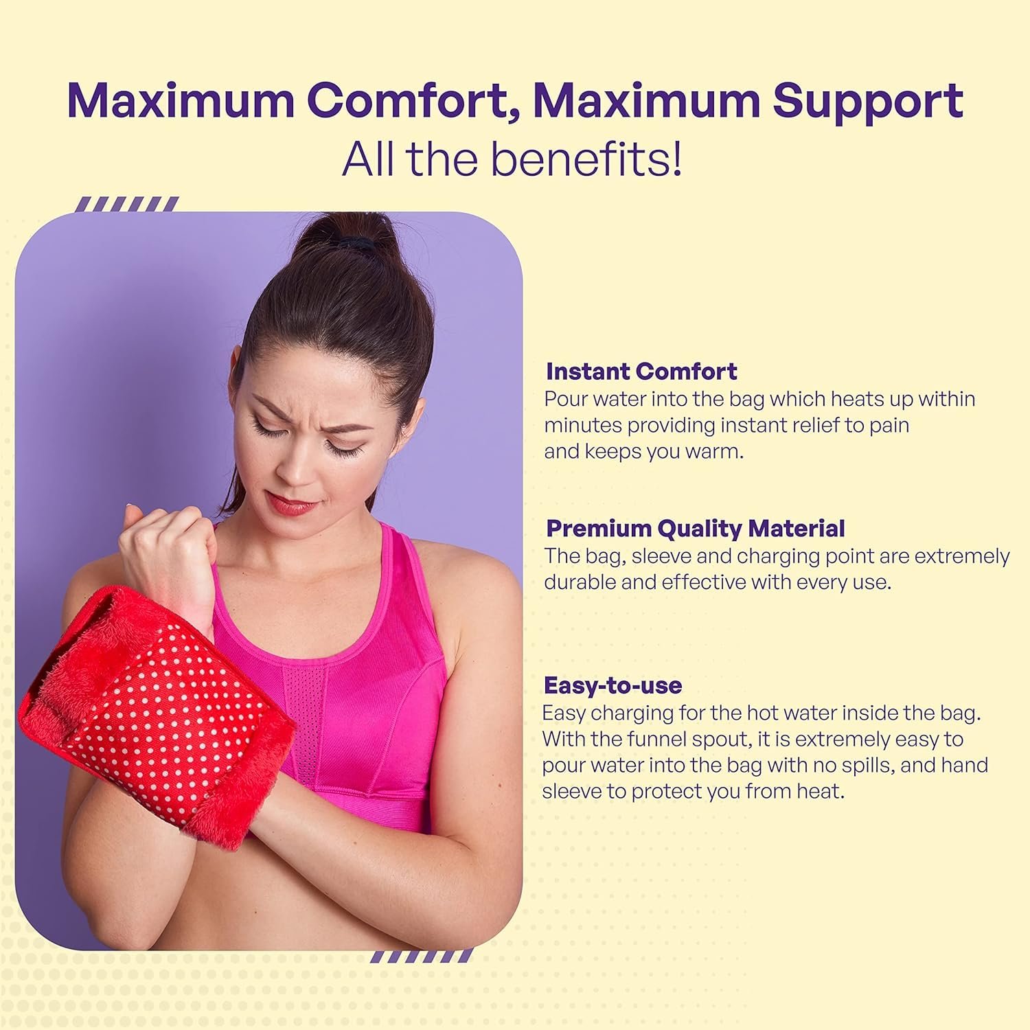 Electric Heat Therapy (No Water Required): No refilling or boiling water needed—simple plug-in heating solution.
