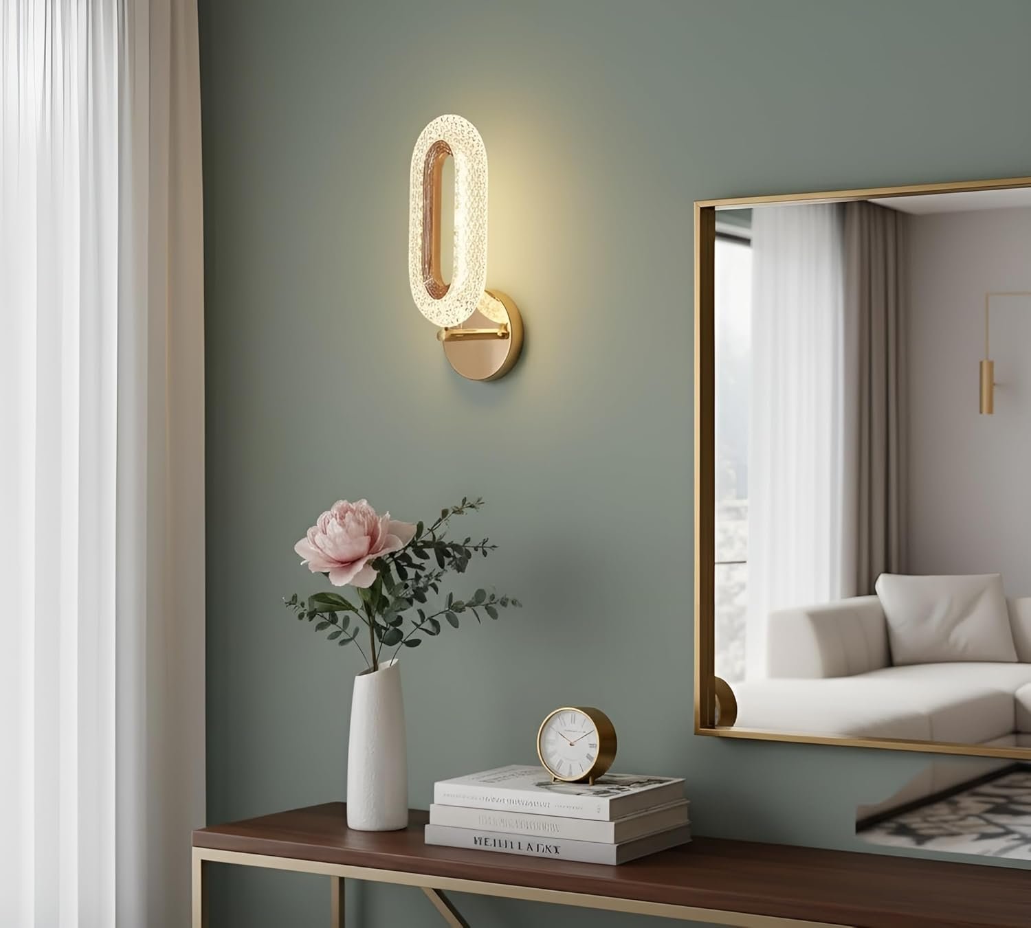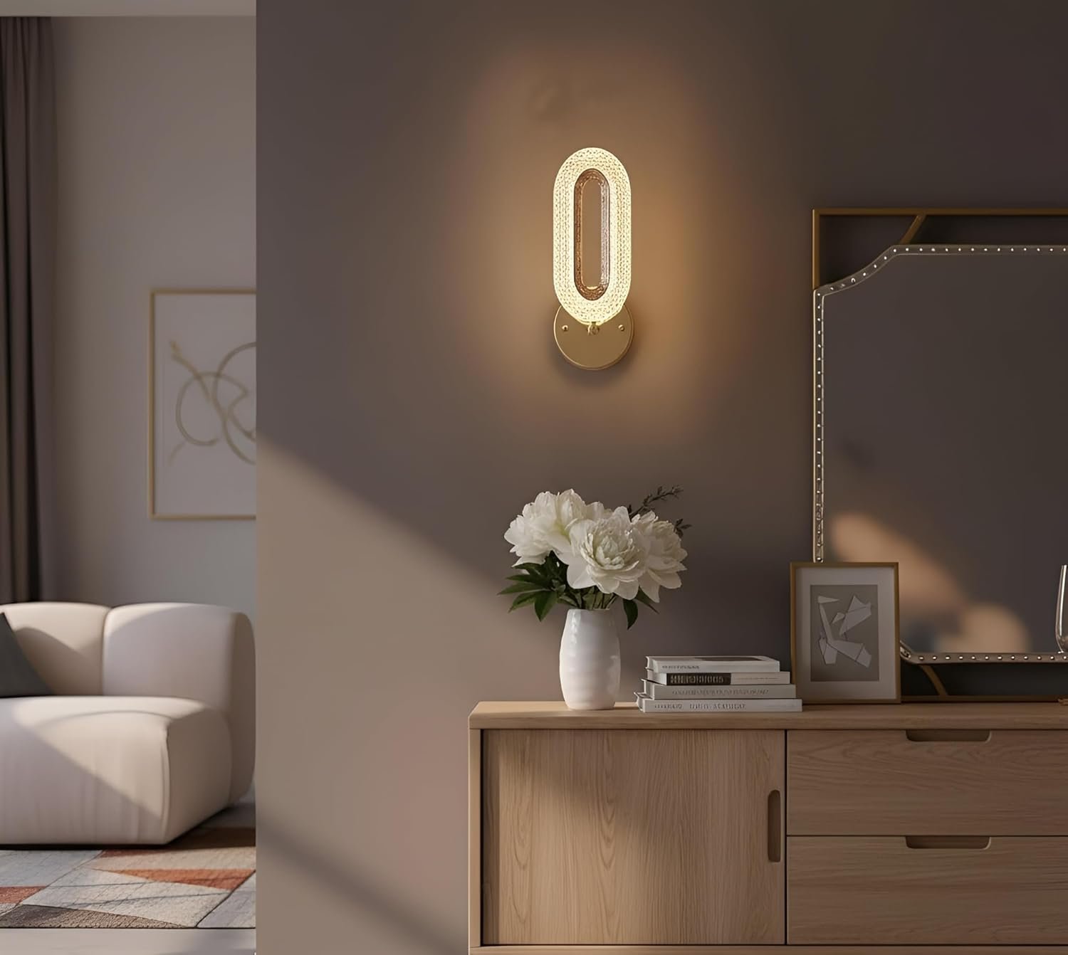 Add a touch of luxury and modern elegance to your space with this Oval Shape Creative LED Wall Lamp. Designed with a glossy crystal body and gold finish, this wall light enhances interiors with a soft, stylish glow. The 3-in-1 color changing feature lets you switch between Warm White, Natural White, and Cool White to match your mood or décor. Ideal for living rooms, bedrooms, hallways, hotels, and decorative walls, this lamp blends contemporary design with energy-efficient LED performance.